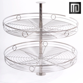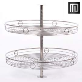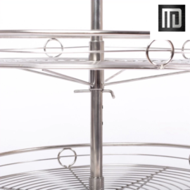 – Với thiết kế một trục cố định ở giữa và 2 mâm inox nan xoay độ giúp việc cất giữ đồ như cốc chén, bát đĩa, chai lọ… trở nên đơn giản hơn. Vừa gọn gàng và ngăn nắp lại vừa tiết kiệm tối đa được không gian bếp.